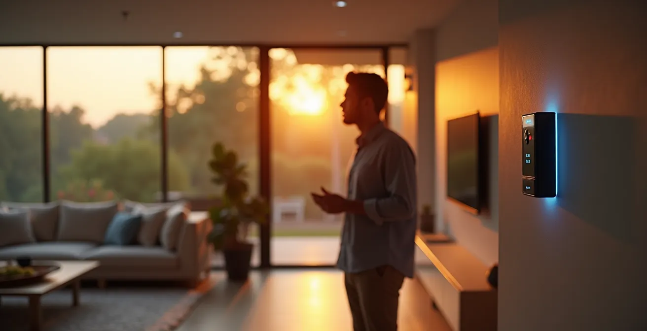 Pensez à une routine qui non seulement arme l’alarme du rez-de-chaussée, mais qui ferme aussi les volets roulants, éteint toutes les lumières sauf celle du couloir, et baisse le thermostat. Cette approche systémique rend la sécurité plus fiable car elle est intégrée dans un processus complet, réduisant les risques d’oubli. Les systèmes domotiques modernes, comme la box TaHoma de Somfy, ont bien compris cet enjeu. Ils introduisent une barrière de sécurité essentielle : pour les actions les plus sensibles, comme la désactivation de l’alarme ou l’ouverture d’une serrure connectée, un code personnel est demandé par l’assistant vocal. Votre voix donne l’ordre, mais seul le code valide l’exécution, créant un système d’authentification à deux facteurs simple et efficace. Votre voix devient la clé, et le code, la combinaison du coffre.