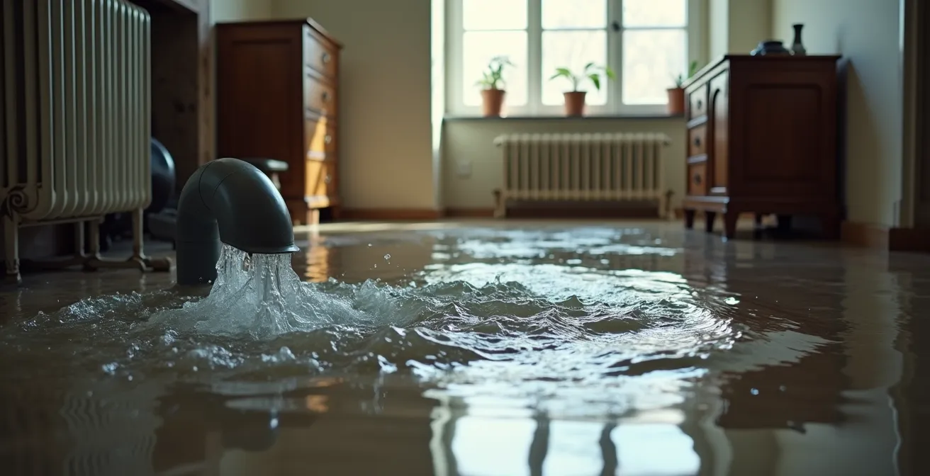 Le bruit est soudain, violent. L’eau ne goutte pas, elle déferle. Le sol de votre cuisine, salle de bain ou cave se transforme en quelques secondes en une pataugeoire glacée. Face à une rupture de canalisation, la panique est la première réaction, et c’est votre pire ennemie. Elle paralyse, fait perdre un temps précieux et aggrave une situation déjà critique. Beaucoup de guides vous diront simplement de « couper l’eau » ou d' »appeler un plombier ». Ces conseils sont justes, mais totalement insuffisants face au chaos d’une inondation domestique.